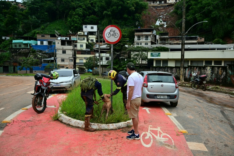 Il tremble, l'air apeuré, mais il est en sécurité. Paquito, petit chien au pelage blanc et noir, a été sauvé d'une zone à risque deux jours après les pluies diluviennes qui ont fait plus de 50 morts dans le sud-est du Brésil.