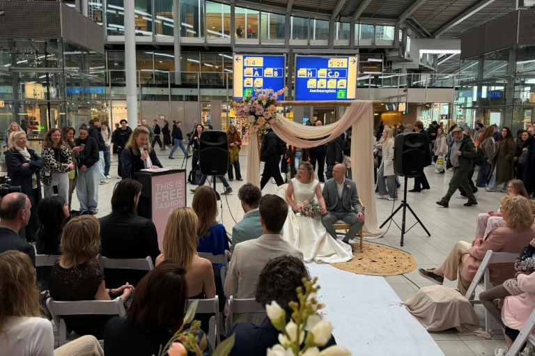 Pour attirer l'attention sur un problème qui leur tient à coeur, cette communicante en développement durable et son époux Mathijs Dordregter, 44 ans, ont opté pour un mariage dans la gare la plus fréquentée des Pays-Bas, organisé en partie par Free Fashion.